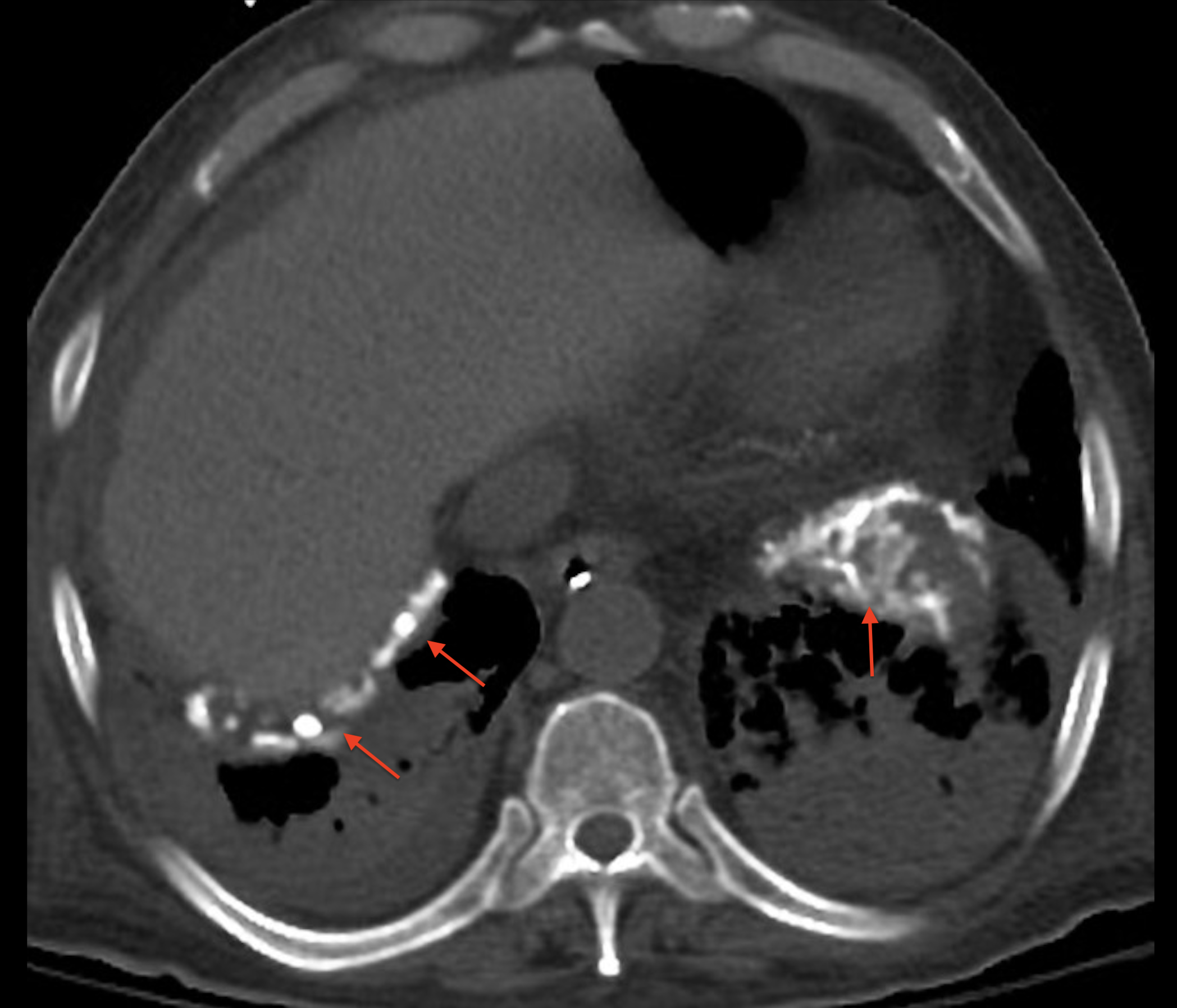 - Tomodensitométrie (scanner) : c’est l’examen le plus sensible pour détecter les plaques pleurales. Il permet une évaluation détaillée de leur taille, de leur distribution et de leur caractère calcifié. Les plaques apparaissent comme des épaississements de la plèvre avec une densité tissulaire, et peuvent être mieux visualisées grâce à la reconstruction multiplanaire.